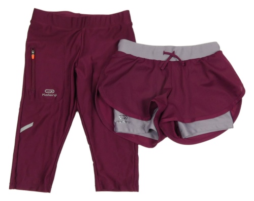 2set - Vínové sportovní capri funkční legíny + vínové kraťasy Kalenji