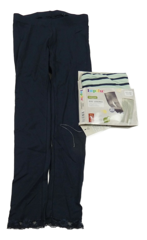 Nové - 2x - Legíny - Tmavomodré s krajkou, mentolovo/tmavomodré pruhované lupilu