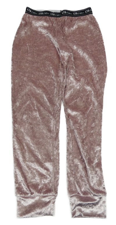 Světlerůžové sametové tepláky s nápisy v pase Matalan