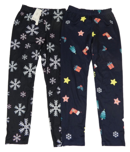Nové - 2x legíny - Černé s vločkami + tmavomodré s vánočními obrázky