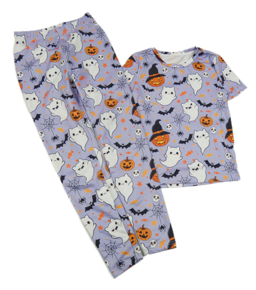 2 set - fialové tričko s duchy a dýněmi + legíny