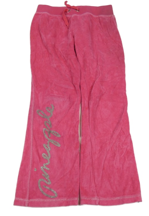 Růžové sametové flare tepláky s nápisem Pineapple