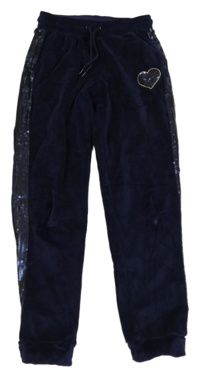 Tmavomodré sametové kalhoty se srdíčkem a flitry
