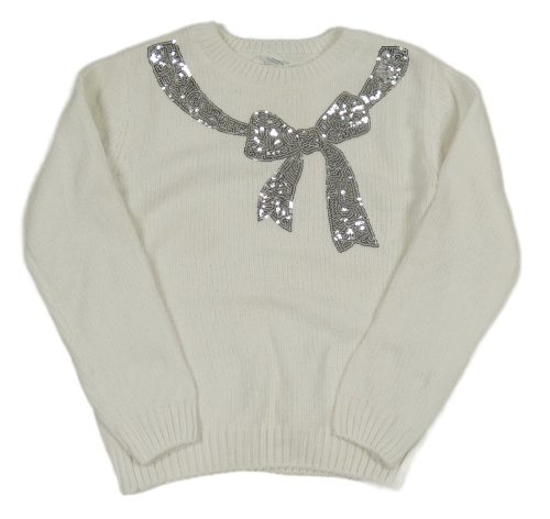 Bílý žinylkový svetr s mašlí z flitrů PRIMARK