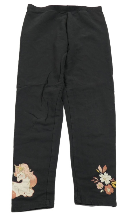 Antracitové teplákové legíny s kytičkami a jednorožcem C&A