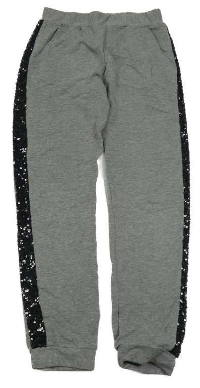 Šedé tepláky s černými flitrovými pruhy