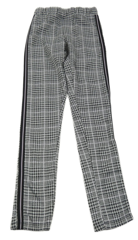 Bílo-černo-lila kostkované legíny s pruhy