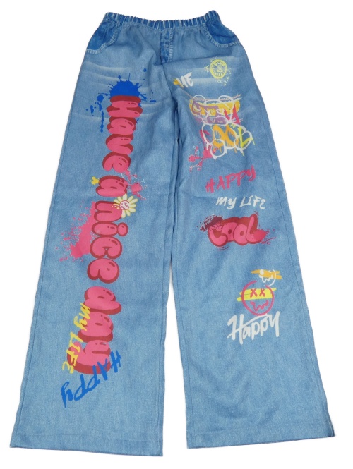 Světlemodré široké legíny riflového vzhledu s nápisy Shein