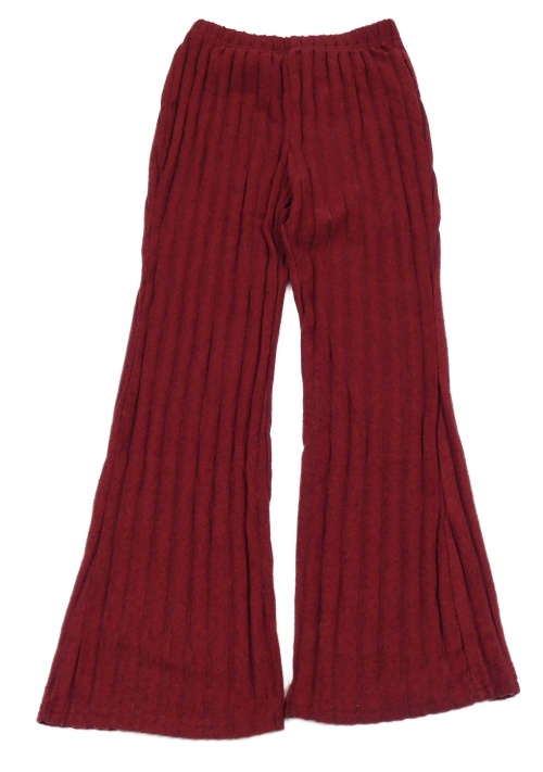 Rubínové úpletové žebrované flare kalhoty shein