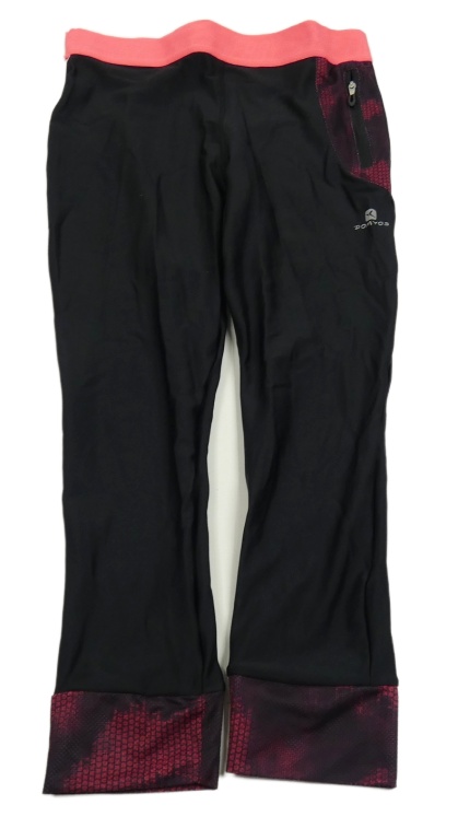 Černo-křiklavě korálové funkční sportovní legíny s logem a vzorem Domyos