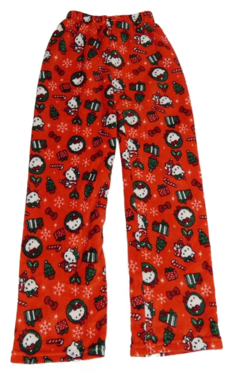 Červené chlupaté domácí kalhoty s Hello Kitty