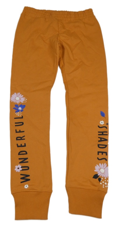 Oranžové tepláky s nápisy a květy PRIMIGI