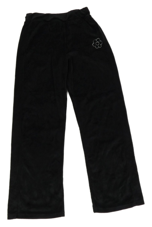 Černé plyšové tepláky s květinou z kamínků Dunnes