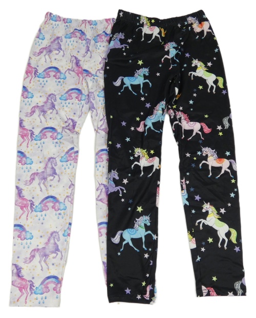 Nové - 2x legíny - bílo-fialové s jednorožci + černé s jednorožci