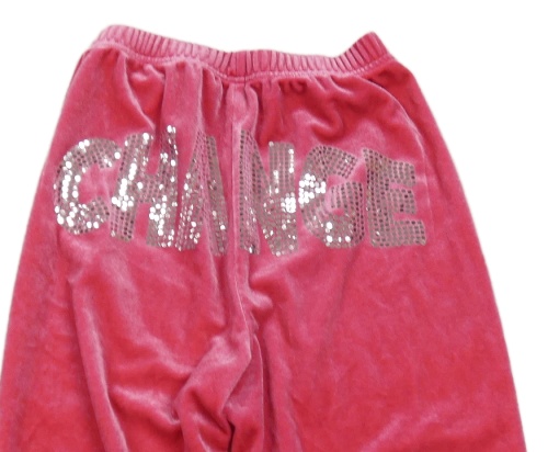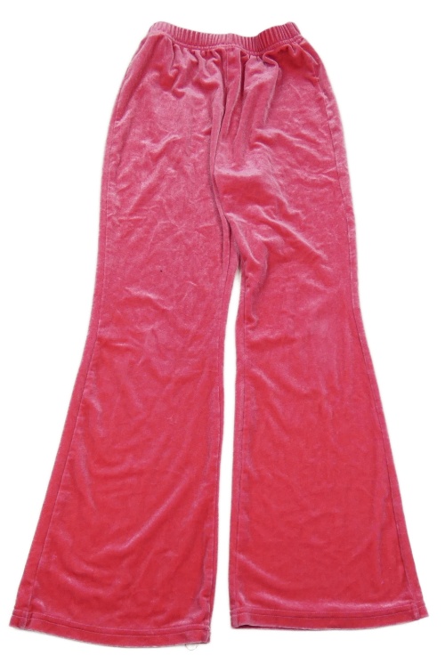 Růžové sametové flare kalhoty s nápisem