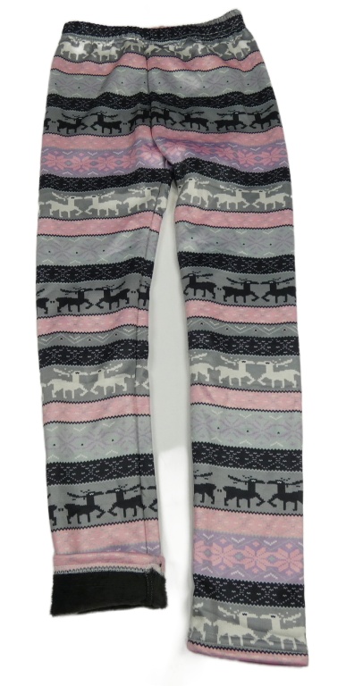 Šedo-černo-růžové pruhované vzorované zateplené legíny