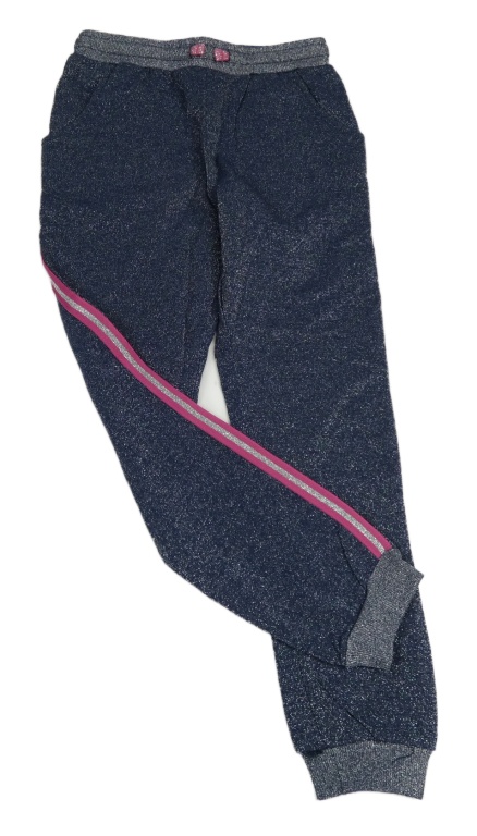 Tmavomodré třpytivé tepláky s růžovým pruhem x-mail