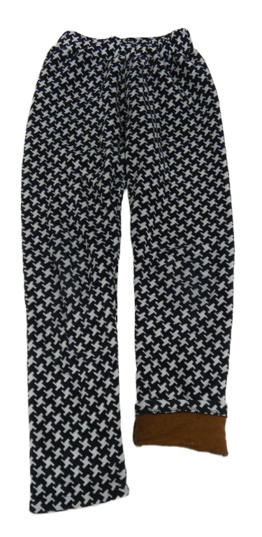 Tmavomodro-světlešedé vzorované plyšové zateplené legíny