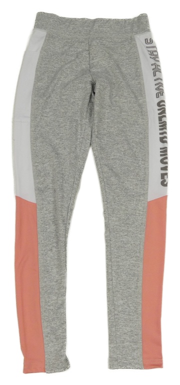 Šedo-růžovo-bílé melírované sportovní legíny s nápisem