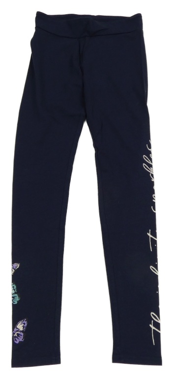 Tmavomodré legíny s nápisem a motýlky Page one young