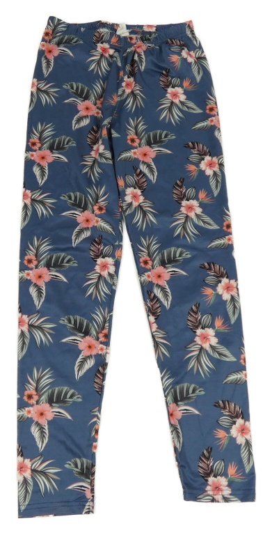 Tmavomodrošedé legíny s květy a lístečky SHEIN