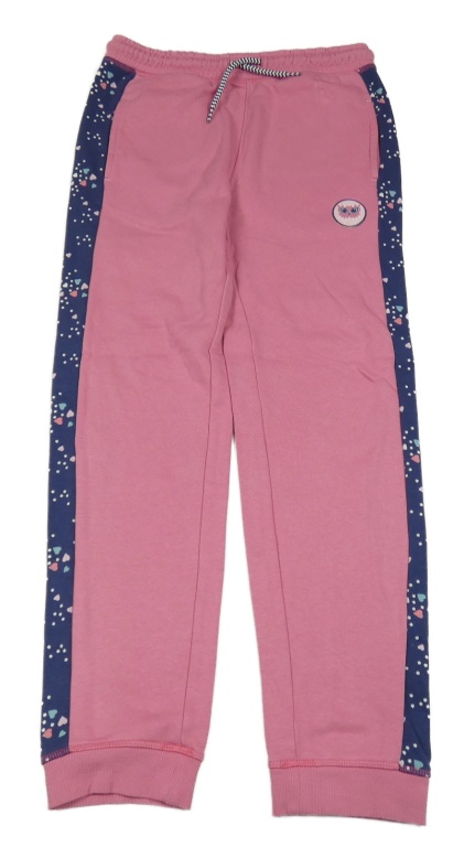 Růžové tepláky s pruhem a sovou