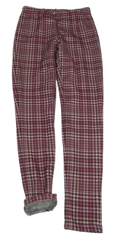 Vínovo-růžovo-smetanové kostkované zateplené legíny Yigga
