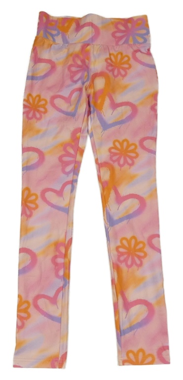 Růžovo-oranžovo-modré batikované sportovní legíny s květy a srdíčky Reserved