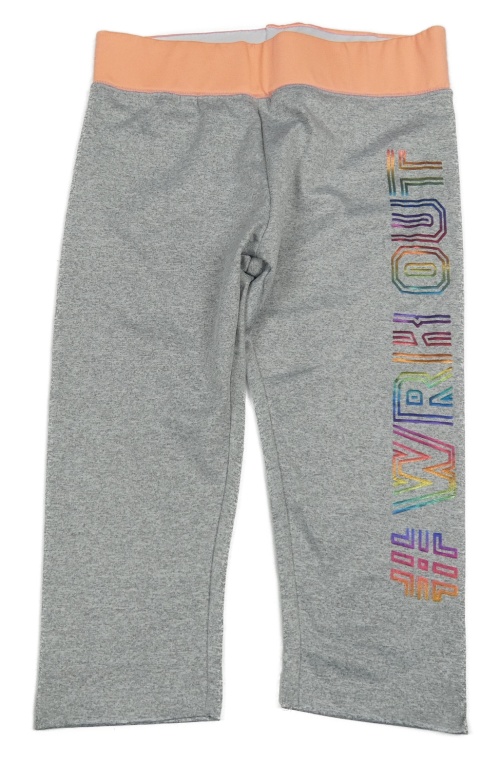 Šedé melírované sportovní capri legíny s nápisem a neonovým pasem Ergeenomixx