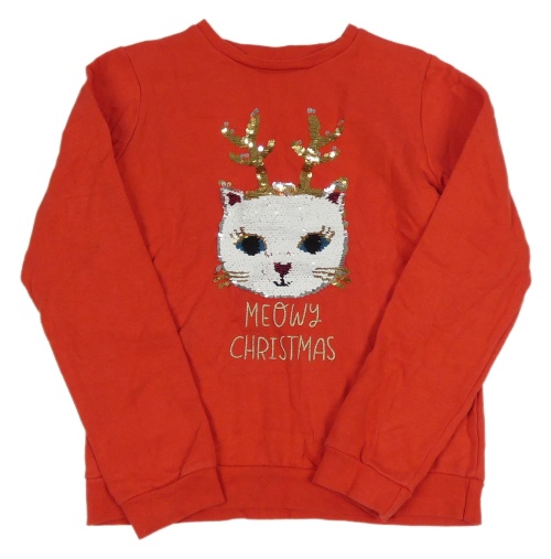 Červená vánoční mikina s kočičkou z překlápěcích flitrů Tu