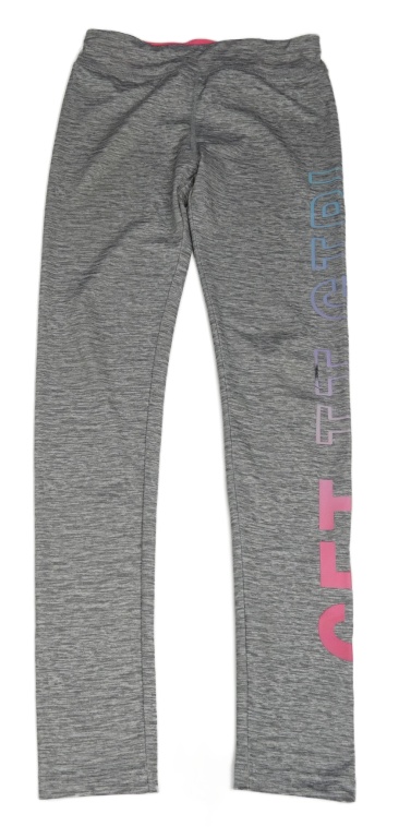 Šedé žíhané sportovní legíny s nápisem