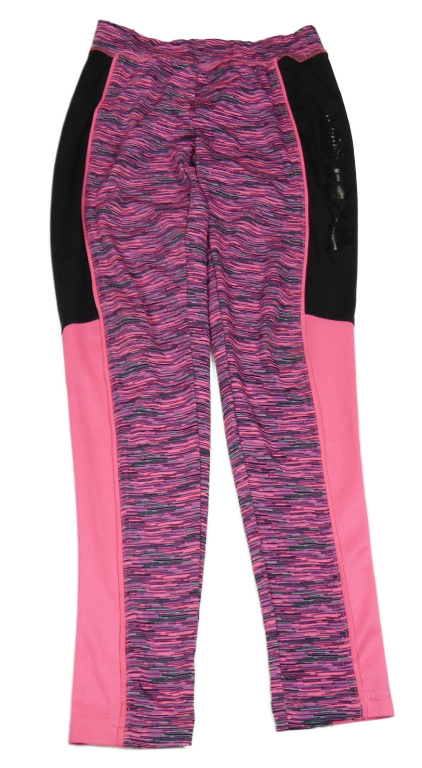 Neonově růžovo-černo-šedé melírované sportovní legíny s nápisem
