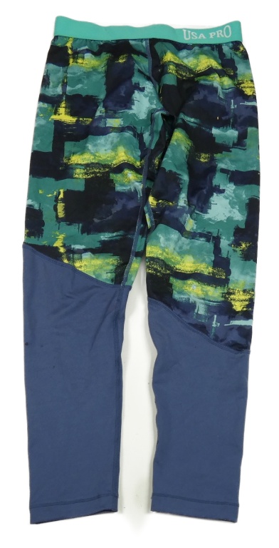 Černo-zeleno-tmavomodré vzorované sportovní legíny USA pro
