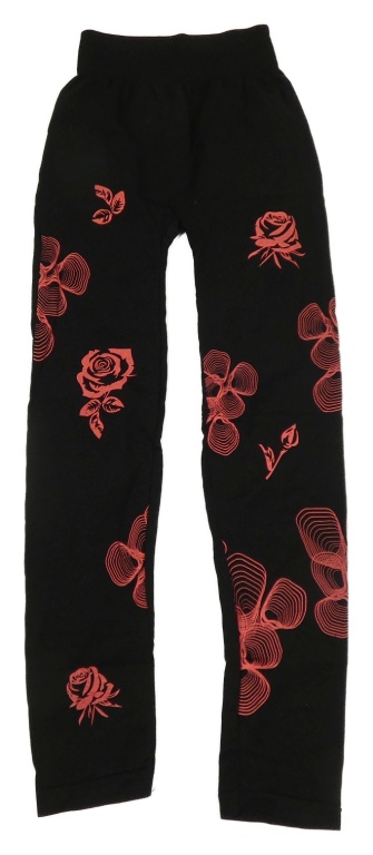 Černé sportovní legíny s růžovými květinami