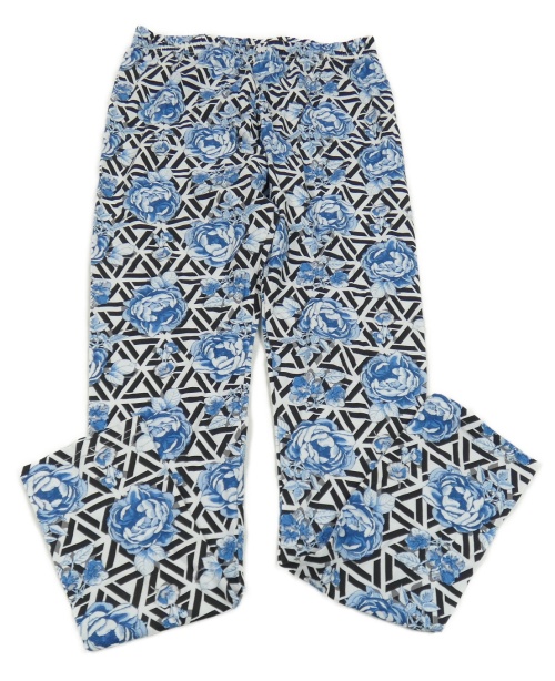 Modro-bílo-černé květované legíny