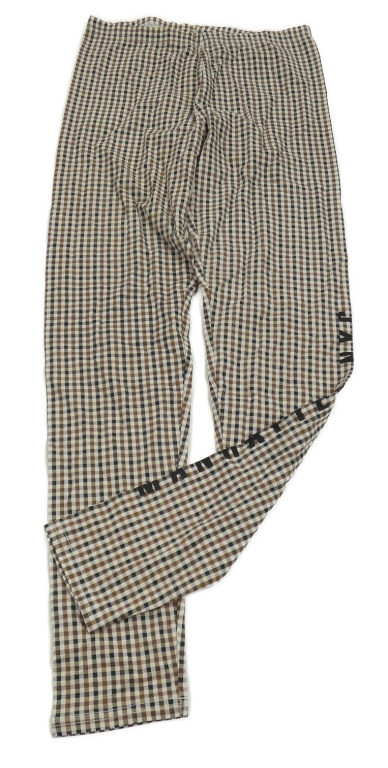 Béžovo-hnědo-černé kostkované legíny s nápisem Page one young