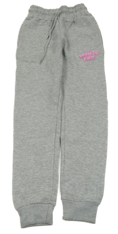 Šedé melírované tepláky s růžovým nápisem