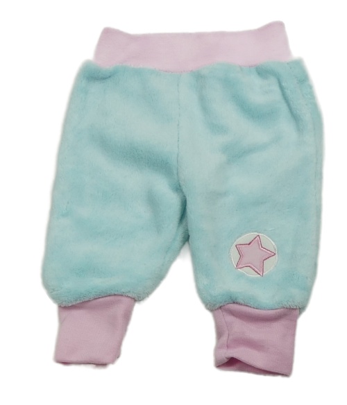 Světlemodré chlupaté tepláky s růžovým lemem a hvězdou Ergee