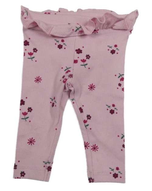 Nové - Růžové květované žebrované legíny s volánem Dunnes