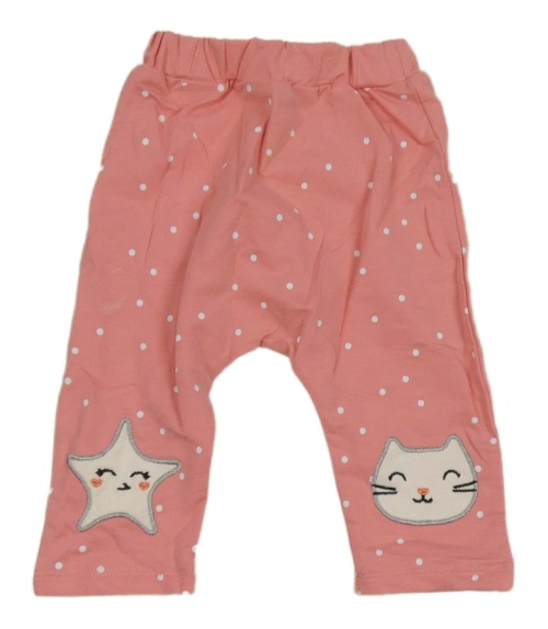 Růžové puntíkaté turecké tepláky s kočičkou a hvězdičkou