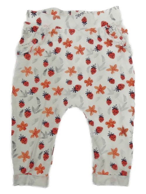 Bílé lehké baggy tepláky s kytičkami a jahůdkami Topomini