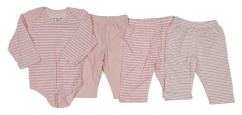 4set - 2x růžovo-bílé pruhované tepáky + 1x růžové tepláky + 1x pruhované body