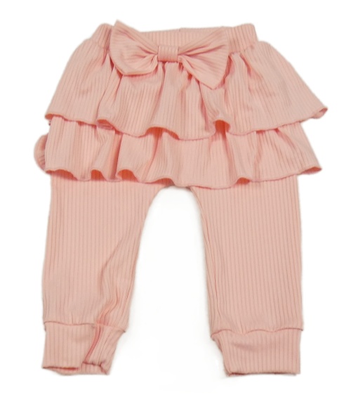 Růžové žebrované turecké tepláky s mašlí a vrstvenou sukní