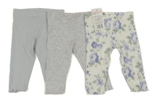 Nové - 3x žebrované legíny - světlemodré + šedé + bílo-modré květované F&F