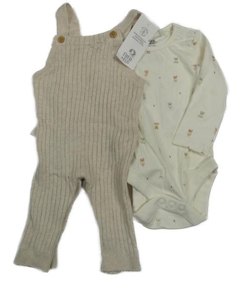 • Nové - 2 set - bílé body s medvědy + béžové pletené žebrované laclové tepláky F&F