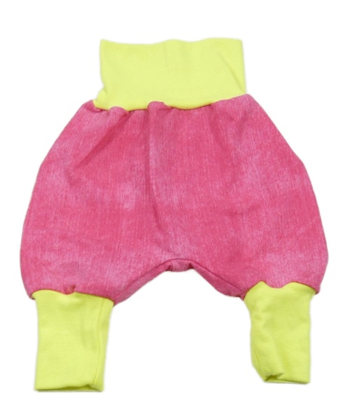 Fuchsiovo-neonově žluté tepláky