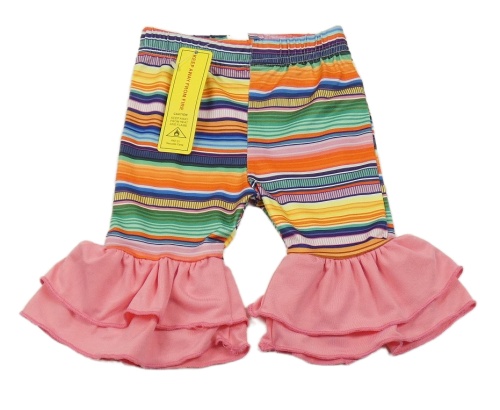 Nové - Růžovo-barevné pruhované legíny s volánky Shein