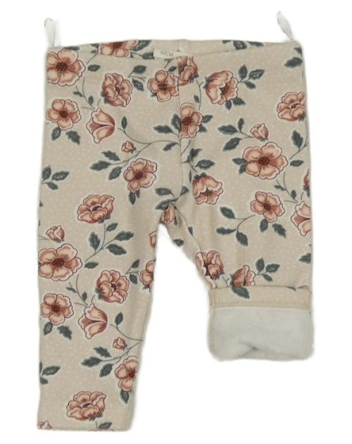 Světlebéžové puntíkaté teplákové zateplené legíny s kytičkami C&A