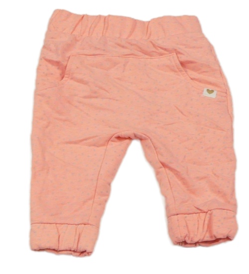 Neonově korálové melírované puntíkaté tepláky se srdíčkem