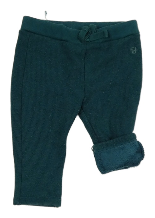 Petrolejovo-tmavomodré pruhované teplé tepláky s kočičkou a mašlí a třpytkami OBaïBi